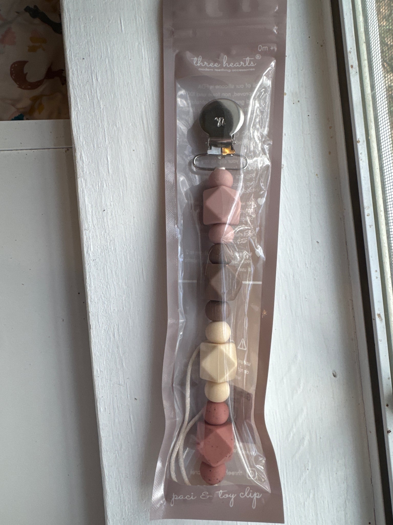 Three Hearts Modern Teething Pacifier Clip